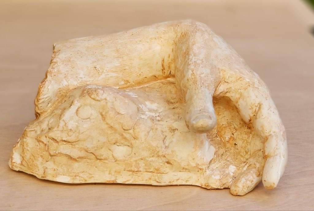 CASTS Dormir. 1998 – 2014. Plaster. 38 x 55 cm. approx. Here is a link showing the breaking of the mold in which it was cast Hand /// Mano. 1997. Plaster. 26 x 16 x 12 cm