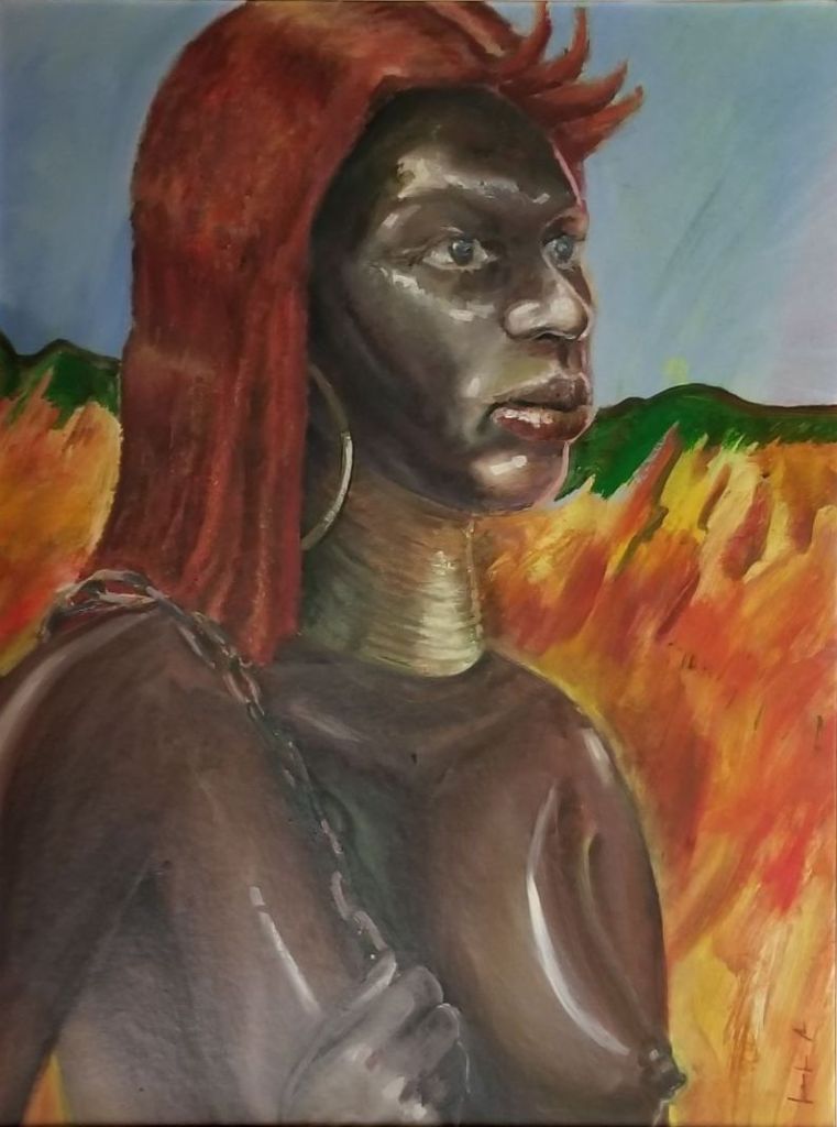 STUDENT WORKS Black woman. Oil on canvas. Ca. 1988. Woman´s head. Polyester resin, stone, fiberglass. 1988.